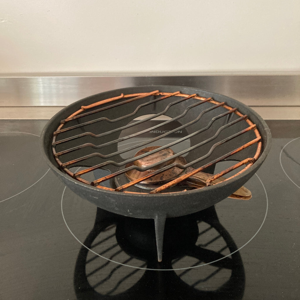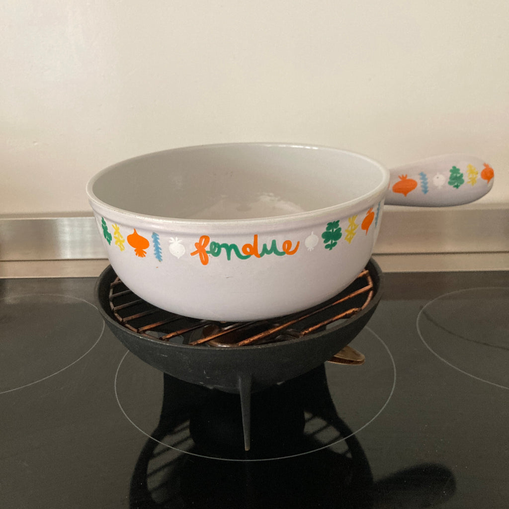 In zeer goede staat verkerend Le Creuset fonduestel bestaande uit een gietijzeren fonduepan (ook te gebruiken als sauspan), een Le Creuset onderstel. de pan is van geëmailleerd gietijzer en heeft een diameter van 22 cm. Geschikt voor gas en inductie fornuizen. de pan kan ook in de oven.